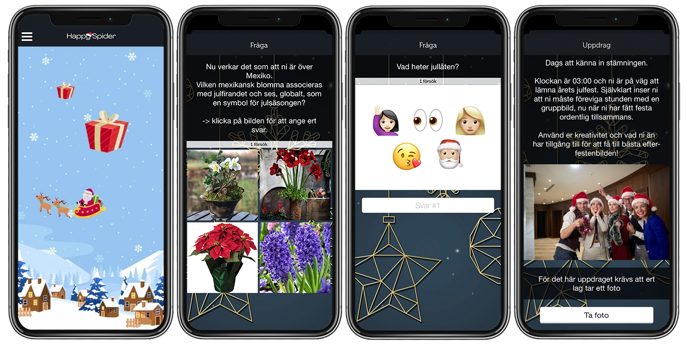 Tävla lagvis i en rad juliga uppdrag. Ni kommer att svara på frågor om mer eller mindre kända jultraditioner, utföra foto- och videouppdrag, och mycket mer.